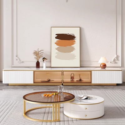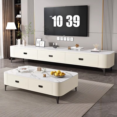 极简轻奢岩板茶几电视柜2024新款猫抓皮家用客厅小户型奶油风茶几