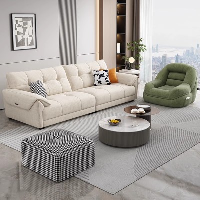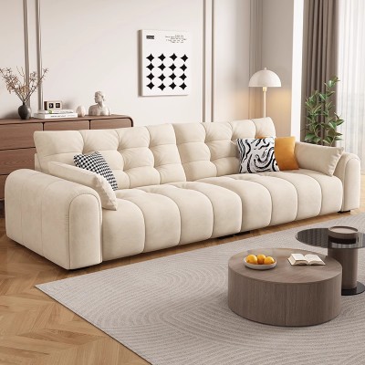 北欧意式极简奶油风简约客厅小户型奶油网红绒布三四人位直排沙发