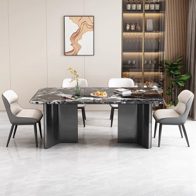 家用长方形小户型轻奢简约简约现代2024新款大理石奢石餐桌椅组合
