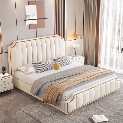 意式轻奢床1.8米双人床2024新款现代 排骨架高箱储物主卧真皮皮床