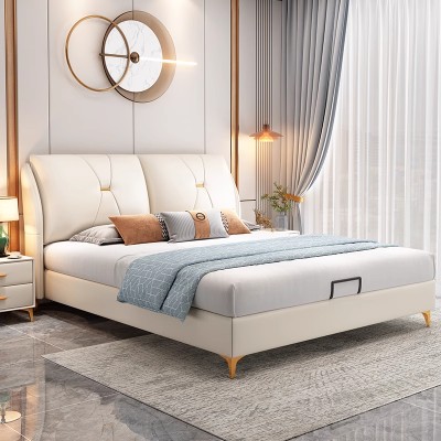 床现代简约意式极简轻奢主卧2025新款床储物高箱皮奶油风双人婚床